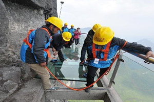 4月7日起,湖南張家界天門山風景區(qū)對西線玻璃棧道進行更換玻璃施工。此次更換的玻璃棧道總長度為60米,使用抗彎曲能力強、耐沖擊強度高的夾膠鋼化玻璃...